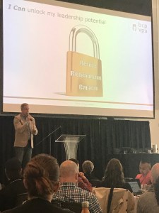 11:20 – 11:40 Our final formal presentation of the week came from Kevin Reimer, our outgoing President of the BCPVPA as well as the incoming Executive Director. Kevin’s talk was titled ‘Learning, Leading and Laughing’, with the tongue-in-cheek subtitle ‘Learning from Kevin’s Many Leadership Mistakes’. He told us a wonderful story about a school he worked with in Comox who made their theme for the year “We Can”, and picked a theme song by a relatively unknown artist named Jesse Ruben. Jesse ended up coming to visit the school to shoot a music video with the school, and his work supporting students through the ‘We Can’ project spread from there! Kevin also talked about the importance of credibility, and the need to re-establish it at every new school you work at, and contrasted the difference between deep influential power versus authoritative, ‘cheap’ power. His final piece of inspiration was a quote he keeps on a post-it note on his computer monitor, to “Increase the Life Chances of Every Child” – and this should be our focus every day!