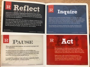 It was from this activity that I knew what we were learning was going to be absolutely applicable to my daily work.  Much of my day is comprised of brief 5 minute interactions with colleagues, parents and students.  And my ability to be ‘dialed-in’ for each of those conversations has a significant impact on my effectiveness as support in my school.  How you conduct yourself is so important.  We learned that ‘conduct’ is where everything inside of you, meets everything outside of you, and the way I conduct myself creates an ‘atmosphere’ in others.